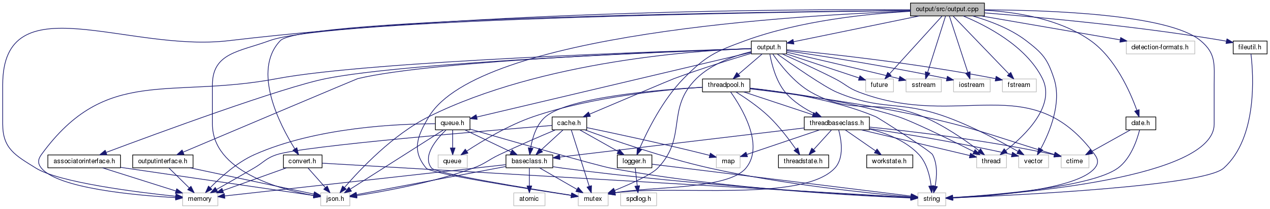 #include <output.h>#include <json.h>#include <convert.h>#include <detection-formats.h>#include <logger.h>#include <fileutil.h>#include <date.h>#include <thread>#include <mutex>#include <future>#include <string>#include <sstream>#include <iostream>#include <fstream>#include <memory>#include <vector>